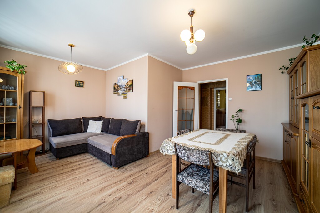 3 pokoje +salon, 69m², komórka, poddasze, parking.